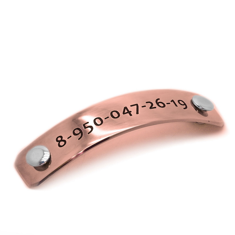 Надежное крепление, глубокая фрезеровка текста делает Адресник долгосрочным, мы уверенны в его эксплуатации не на один год!